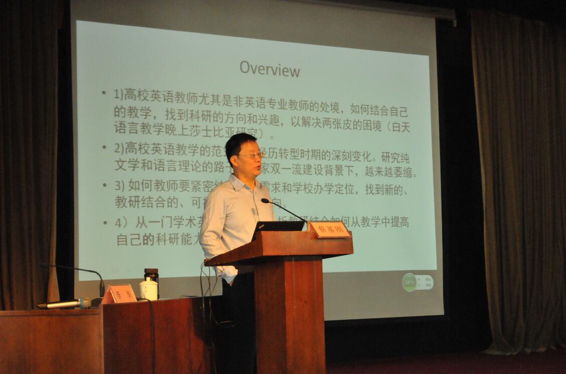 复旦大学蔡基刚教授做了题为《结合教学找到科研创新的源泉》的专题报告。蔡基刚教授首先对科研中的创新要求作了说明,从“怎样从教学中培养科研兴趣;从自己的教学实践中发现问题;从读教学期刊中发现问题;从教学改革中发现课题;从教学中培养自己的科研能力、方法、要求,掌握实证性研究的方法”五个方面结合语言理论和教学改革实践进行了深入阐述。他的讲座紧贴教学实际,信息量极为丰富,给教师们留下了深刻的印象。